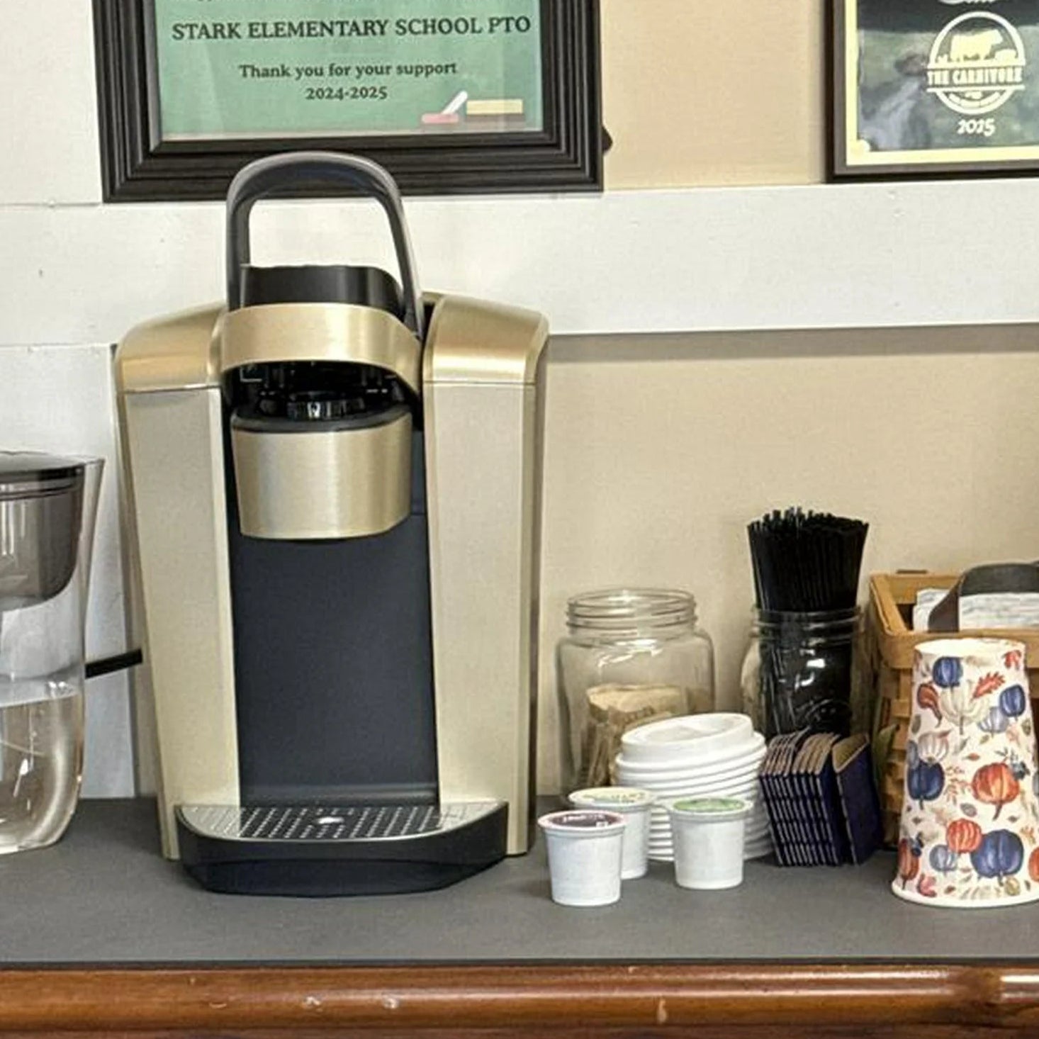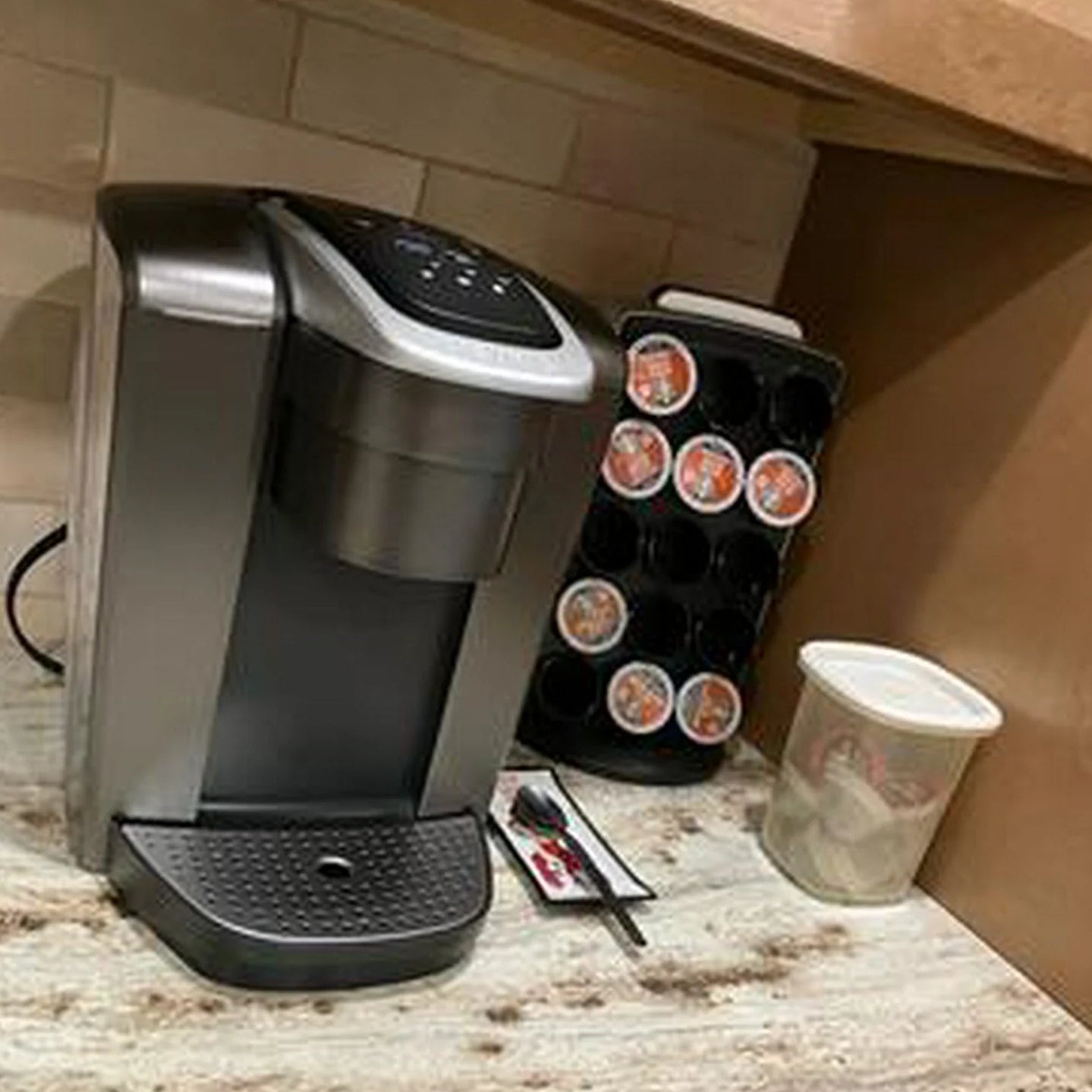 Новата ми кафемашина е страхотна с четирите размера чаши и е изключително тиха, когато приключи приготвянето. Много ми харесва тъмносиният цвят, елегантният дизайн и по-големият резервоар за вода. Това е третата ми Keurig машина за повече от 20 години и винаги ще имам такава в кухнята си. Споделила съм с други колко много харесвам моята кафемашина Keurig